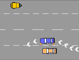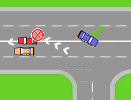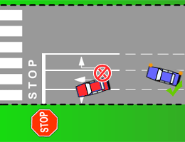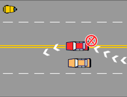 When driving on a road marked with Lane Lines, you must keep your vehicle entirely within a lane. It is an offence to straddle a line. The red car in the illustration is straddling the lane line.